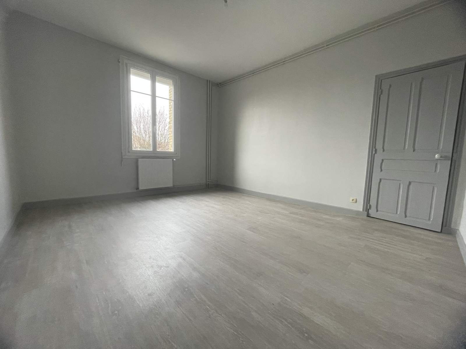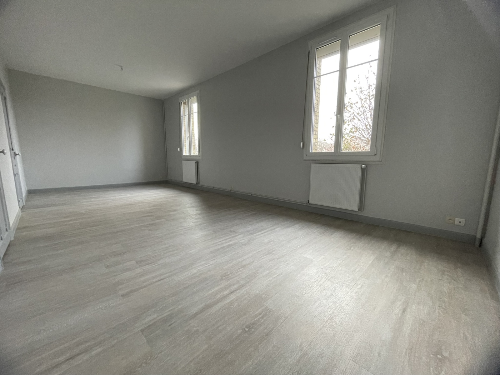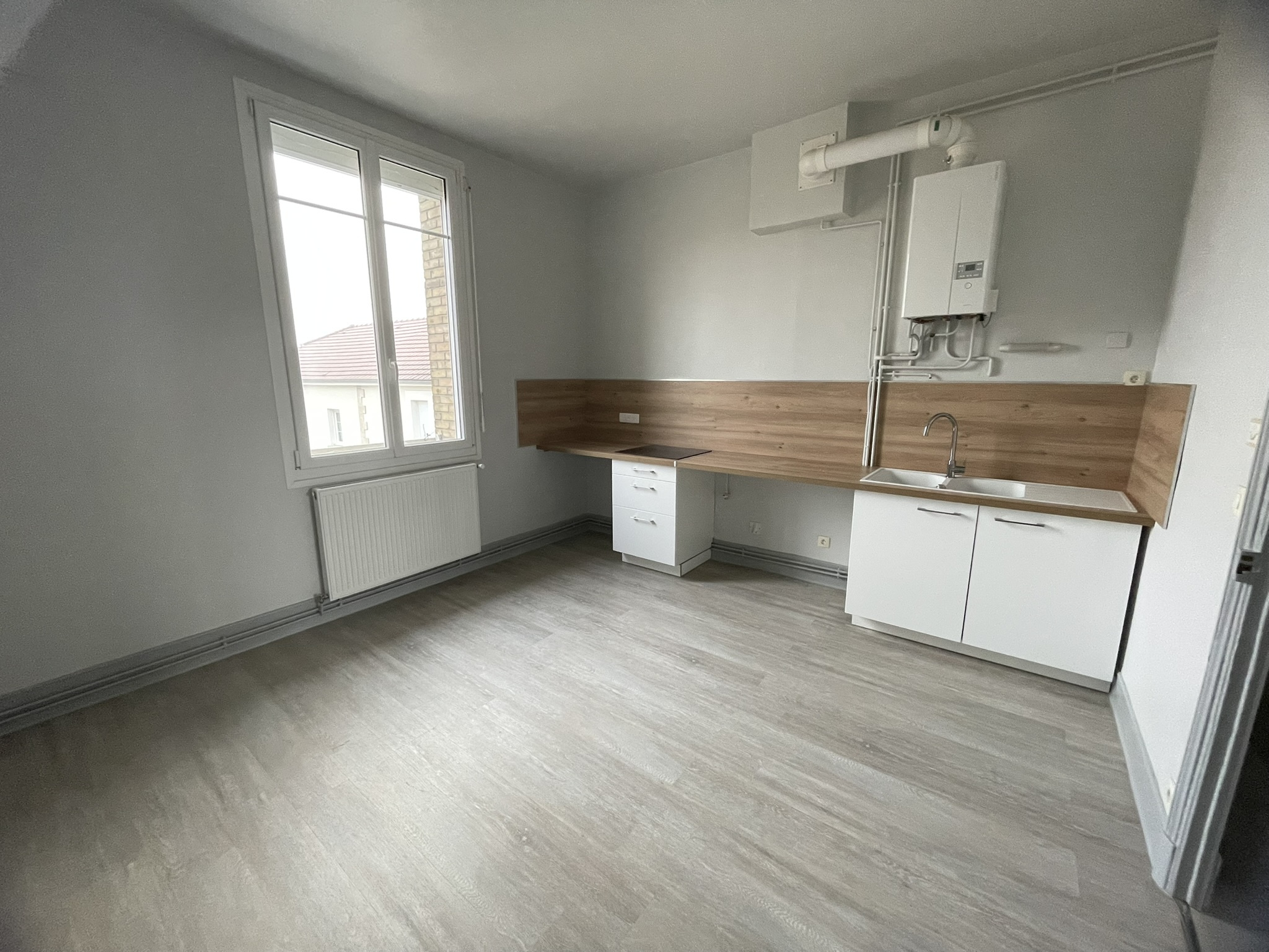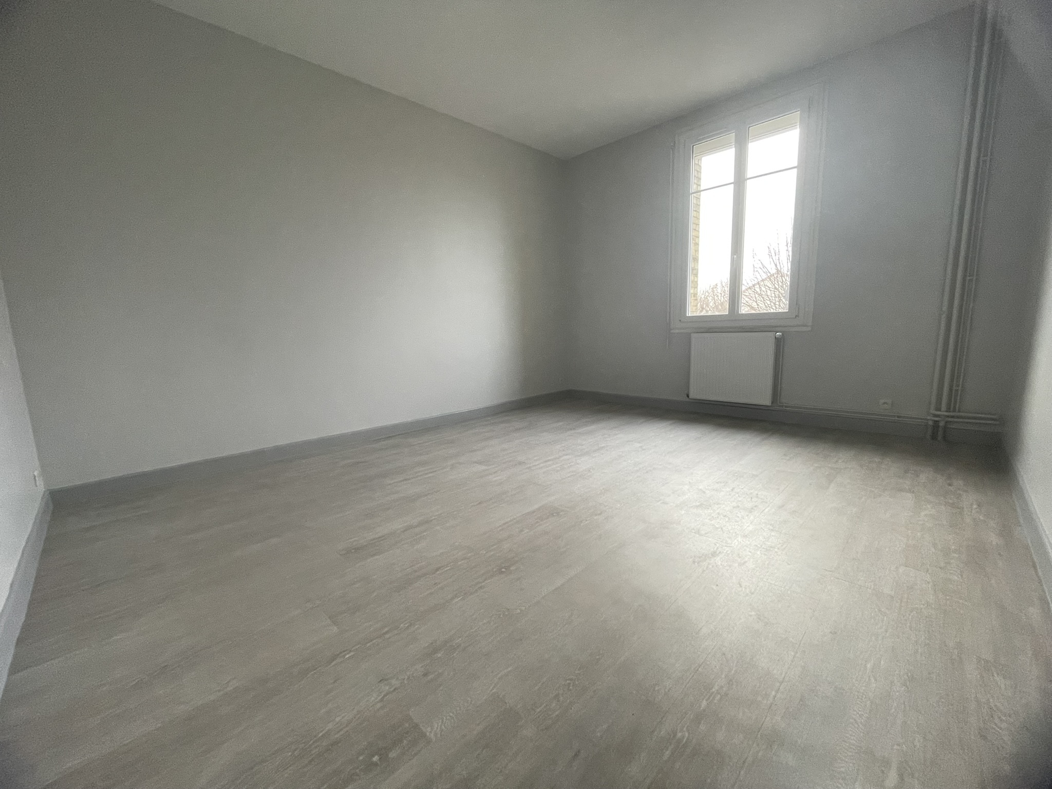Appartement de type 4, de 107 m² hab. au 1er étage sans ascenceur refait à neuf au dessus d'une école élémentaire dans le village de WITRY LES REIMS, composé de : Entrée, salon/séjour, w.c, salle de bains, cuisine partiellemnt aménagée, 2 chambres, dont une avec placard.