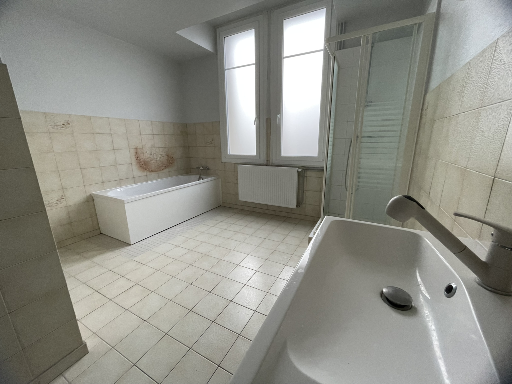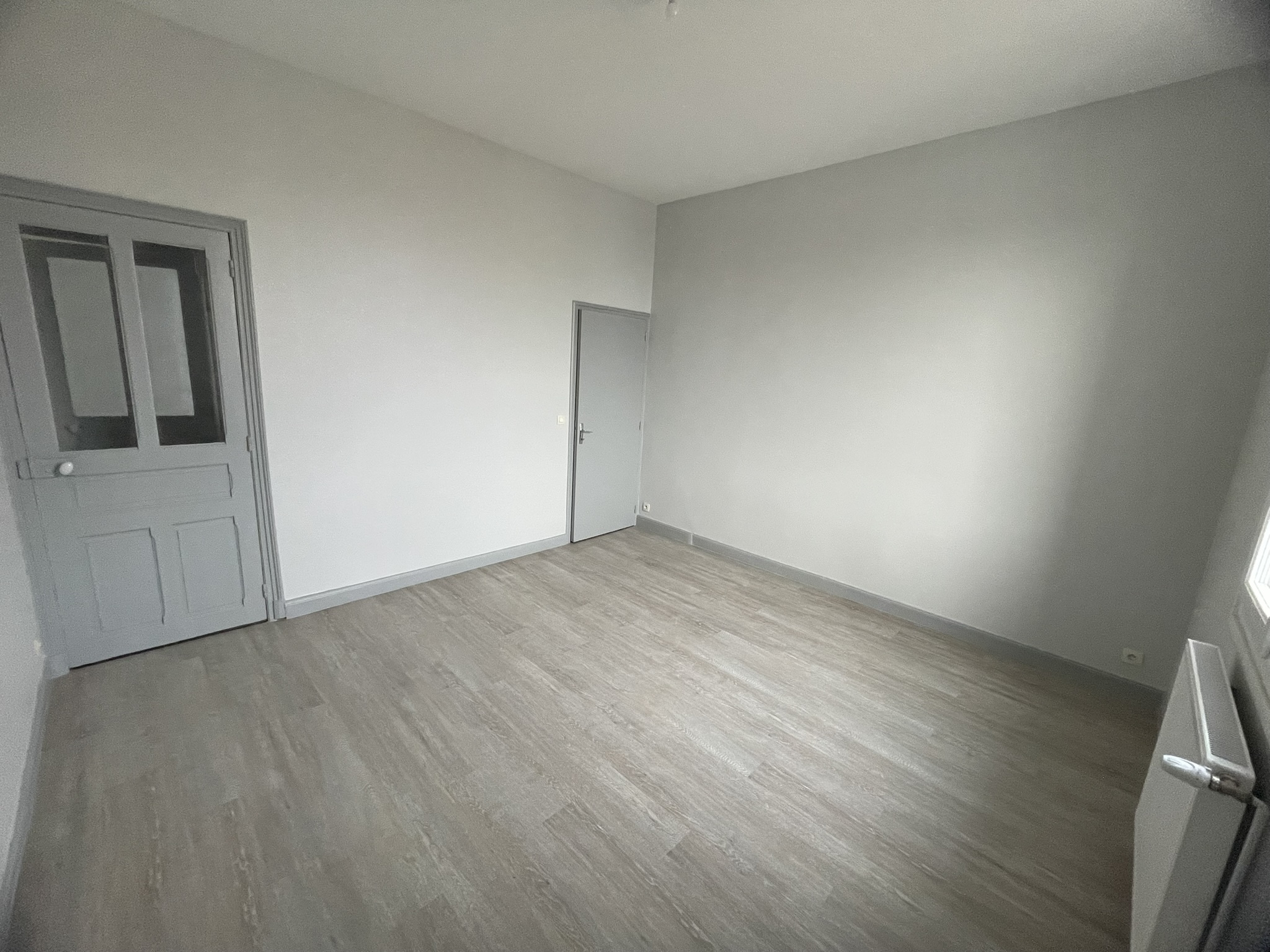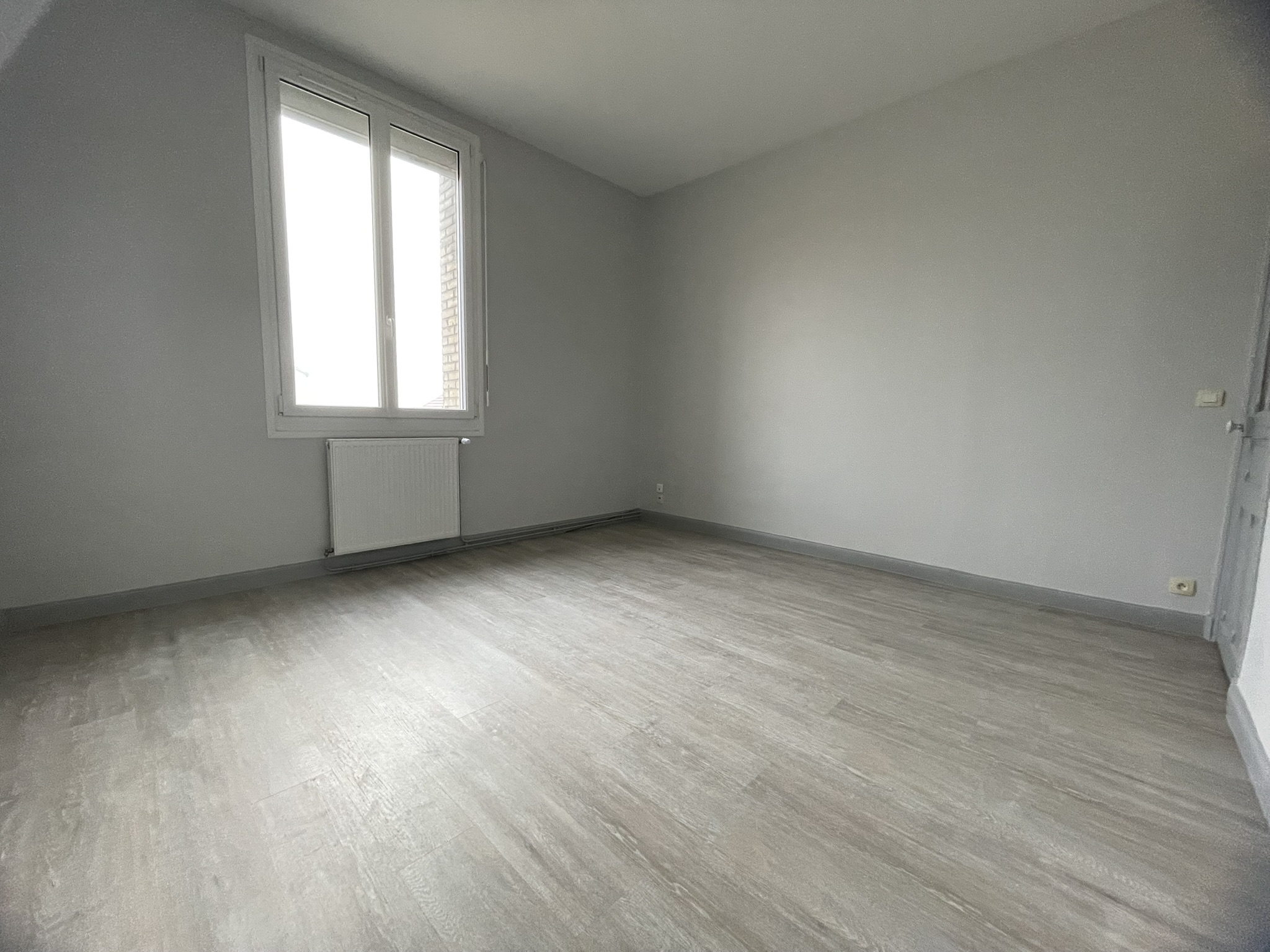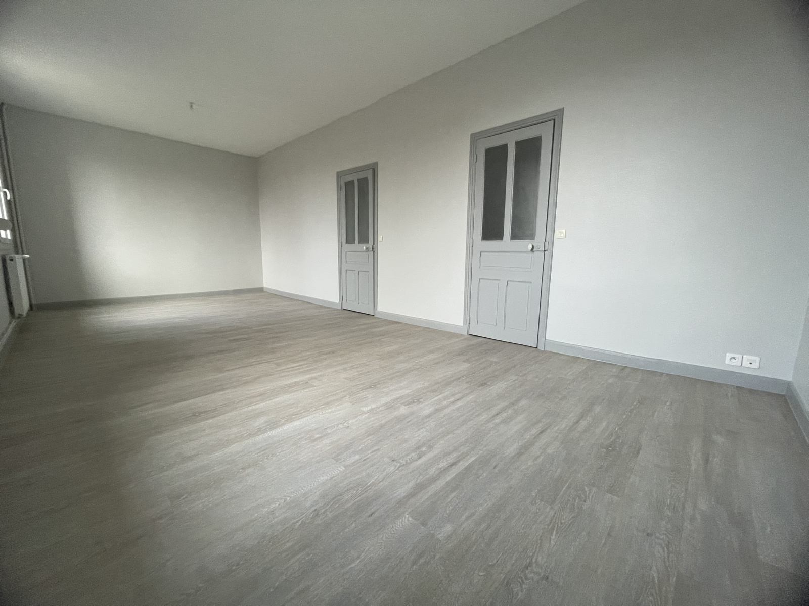 Appartement de type 4, de 107 m² hab. au 1er étage sans ascenceur refait à neuf au dessus d'une école élémentaire dans le village de WITRY LES REIMS, composé de : Entrée, salon/séjour, w.c, salle de bains, cuisine partiellemnt aménagée, 2 chambres, dont une avec placard.