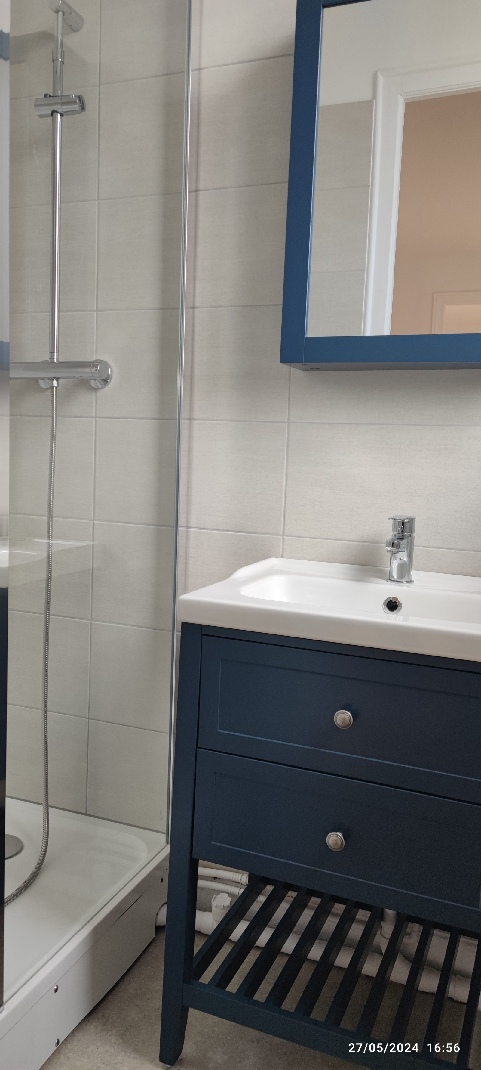 Entrée, séjour, cuisine, 2 chambres, salle d'eau (douche, lavabo), w.c.