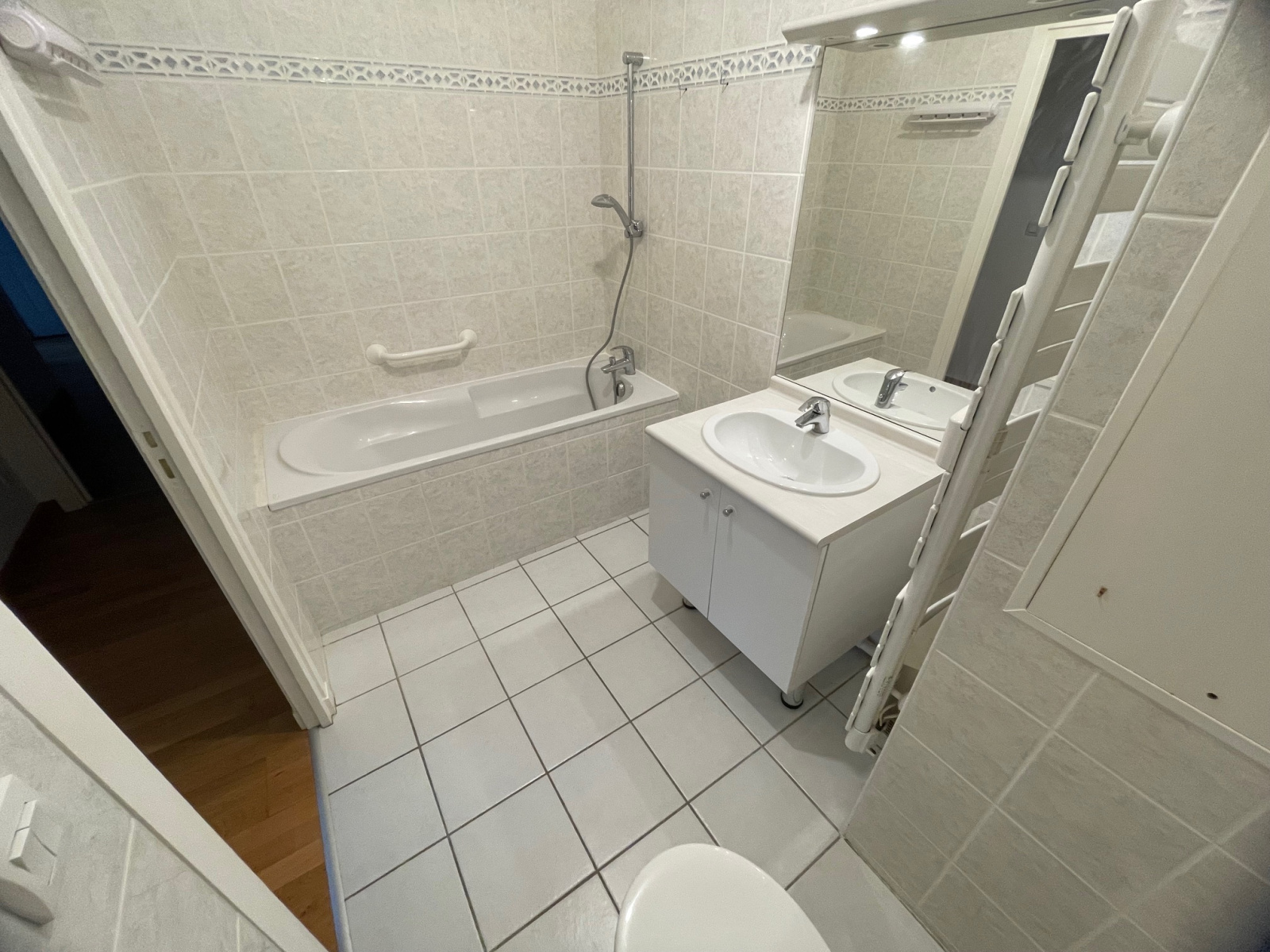 Entrée avec placard, salon/séjour (51 m²), cuisine aménagée, w.c. avec lave-mains, 3 chambres, salle d'eau (douche, lavabo, bidet), salle de bains (baignoire, lavabo, w.c.)